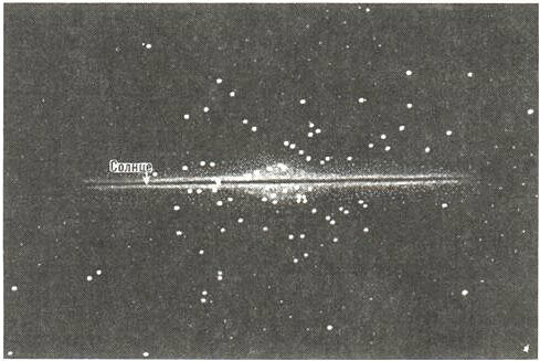 ГАЛАКТИКА, звёздная система (спиральная галактика), к которой принадлежит Солнце (для отличия от др. галактик пишется с прописной буквы). Галактика содержит не менее 1011 звёзд (общая масса ~ 1011 масс Солнца), межзвёздное вещество (газ и пыль, масса которых составляет несколько процентов массы всех звёзд), космические лучи, магнитные поля, излучение (фотоны). Большинство звёзд находится в объёме линзообразной формы поперечником ок. 100 тыс. световых лет, концентрируясь к плоскости симметрии этого объёма (галактической плоскости) и к центру (ядру) Галактики, который находится в направлении созвездия Стрельца. Солнце расположено вблизи галактической плоскости на расстоянии ок. 26 тыс. световых лет от центра Галактики. Для земного наблюдателя звёзды, концентрирующиеся к галактической плоскости, сливаются в видимую картину Млечного Пути.