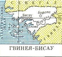 ГВИНЕЯ-БИСАУ (Республика Гвинея-Бисау), государство в Зап. Африке, включает острова Болама и Бижагош, омывается Атлантическим океаном. Пл. 36 тыс. км2. Население 1,1 млн. чел., баланте, фульбе и др. Официальный язык - португальский. Ок. 60% населения придерживается местных традиционных верований, 30% - мусульмане, остальные - христиане. Глава государства - президент. Столица - Бисау. Адм.- терр. деление: 8 р-нов и автономный сектор Бисау. Денежная единица - песо Гвинеи-Бисау.