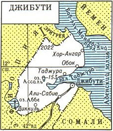 ДЖИБУТИ (Республика Джибути), государство на С.-В. Африки. Пл. 22 тыс. км2. Население 604 тыс. чел.; исса, афар, арабы, европейцы и др. Официальные языки - арабский и французский. Большая часть исса и афар - мусульмане, часть афар придерживается местных традиционных верований. Глава государства и правительства - президент. Законодательный орган - Национальное собрание. Столица Джибути. Адм.-терр. деление: 5 округов. Денежная единица франк Джибути.