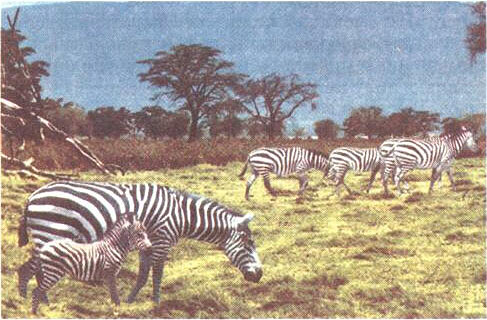 ЗЕБРЫ, млекопитающие рода лошадей. Длина тела 200-240 см, хвоста 40-50 см, высота в холке 120-140 см, масса до 350 кг. Окраска - чередующиеся тёмные и светлые полосы. 4 вида (1 - истреблён) в Юж., Вост. и Центр. Африке. Осторожны, бегают быстро. Шкура высоко ценится, что послужило причиной сокращения численности. Хорошо размножаются в неволе, но плохо приручаются. Живут до 20-25 лет.