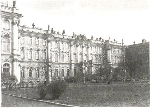ЗИМНИЙ ДВОРЕЦ в Санкт-Петербурге, памятник архитектуры русского барокко. Построен в 1754-62 В.В. Растрелли. Был резиденцией российских императоров, с июля по ноябрь 1917 - Временного правительства. Мощное каре с внутренним двором; фасады обращены к Неве, Адмиралтейству и Дворцовой площади. Парадное звучание здания подчёркивает пышная отделка фасадов и помещений. В 1918 часть, а в 1922 всё здание передано Эрмитажу.
