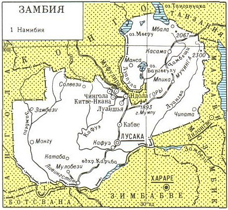 ЗАМБИЯ (Республика Замбия), государство в Центр. Африке. Пл. 752,6 тыс. км2. Население 9,7 млн. чел.; бемба, тонга, малави, лози и др. Официальный язык - английский, Ок. 60% населения придерживаются местных традиционных верований. Входит в Содружество. Глава государства и правительства - президент. Законодательный орган - Национальное собрание. Столица - Лусака. Адм.-терр. деление: 9 провинций. Денежная единица - квача.
