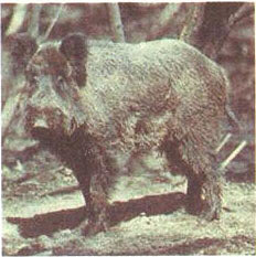КАБАН (дикая свинья, вепрь), млекопитающее (семейство свиньи). Длина до 2 м, масса до 300 кг. Тело покрыто грубой щетиной. Сильно различаются по размерам и окраске (от светло-бурой до почти чёрной); у поросят - светлые продольные полосы. Распространён в Евразии и Сев. Африке. Родоначальник домашней свиньи.