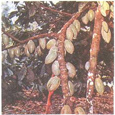 КАКАО (шоколадное дерево), вечнозелёное дерево (семейство стеркулиевые). Растёт в тропических лесах Америки. Культивируется в тропиках обоих полушарий. Мякоть плодов съедобна. Семена содержат алкалоид теобромин, применяемый в медицине, а также до 50% масла, используемого в кондитерской, фармацевтической и парфюмерной пром-сти. Жмых идёт на изготовление шоколада и порошка какао.