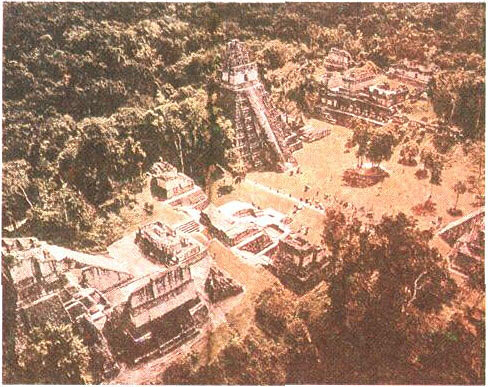 Майя цивилизация. Центральная группа храмов в Тикале.