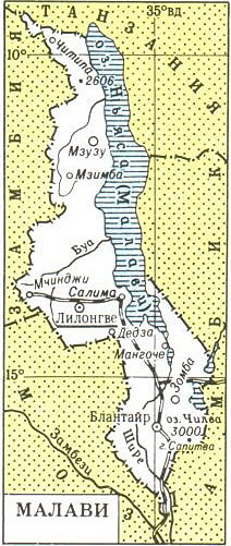 Официальные языки - ньянджа (язык малави) и английский. Верующие: ок. 50% придерживаются традиционных верований, ок. 40% - христиане, 10% - мусульмане. Входит в Содружество. Глава государства и правительства - президент. Законодательный орган - парламент (Национальное собрание). Столица - Лилонгве. Адм.-терр. деление: 3 провинции. Денежная единица - малавийская квача.