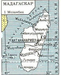 В 1896-1960 Мадагаскар (с 1958 - самоуправляющаяся Малагасийская Республика) - владение Франции, с 1960 независимое государство. С 1975, после прихода к власти Д. Рацираки (президент и председатель Верховного революционного совета с 1975, генеральный секретарь партии Авангард малагасийской революции с 1976), страна стала называться Демократической Республикой Мадагаскар. В октябре 1991 правительство и оппозиция подписали конвенцию о создании Переходного правительства национального единства. Приостановлена деятельность Верховного революционного совета и Национального народного собрания в связи с образованием новых органов власти на переходный период. В августе 1992 на референдуме одобрена новая конституция Мадагаскара. С сентября 1992 страна называется Республика Мадагаскар.