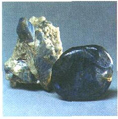 Сапфир. Кристалл со Среднего Урала и сапфировая галька с острова Шри-Ланка.