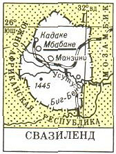 СВАЗИЛЕНД (Королевство Свазиленд), государство на Ю. Африки. Пл. 17,4 тыс. км2. Население 934 тыс. чел., гл. обр. свази. Официальные языки - английский и свази. Большинство верующих - христиане, около 40% придерживается местных традиционных верований. Входит в Содружество. Глава государства - король, правительство возглавляет назначаемый им премьер-министр. Законодательный орган - двухпалатный парламент (Сенат и Палата собрания). Столица - Мбабане (резиденция короля и парламента - Лобамба). Адм.-терр. деление: 4 округа. Денежная единица - лилангени.