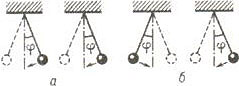 Фаза. Колебания маятников в одинаковой фазе (а) и противофазе (б); ф - угол отклонения маятника от положения равновесия.