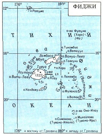 ФИДЖИ (Суверенная Демократическая Республика Фиджи), государство в Океании, в юго-западной части Тихого океана, на островах Фиджи. Пл. 18,3 тыс. км2. Население 802 тыс. чел., в осн. фиджи-индийцы (ок. 1/2) и фиджийцы (ок. 1/2). Официальный язык - английский. Верующие - христиане (53%), индуисты (38%), мусульмане (8%). Глава государства - президент. Законодательный орган - двухпалатный парламент (Сенат и Палата представителей). Столица - Сува (остров Вити-Леву). Адм.-терр. деление: 4 округа. Денежная единица - доллар Фиджи.