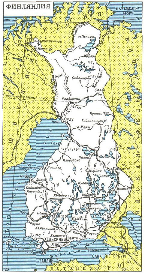 В середине 12-14 вв. захвачена шведами. В 1809 в результате русско-шведской войны (1808-09) присоединена к России (Великое княжество Финляндское). В декабре 1917 провозглашена независимость Финляндии, в июле 1919, после завершения гражданской войны в Финляндии, Финляндия стала республикой. В 1939 Финляндия подверглась нападению со стороны СССР, что привело, несмотря на ожесточённое сопротивление финнов в "зимней войне" 1939-1940, к утрате части территории. В 1941-44 Финляндия вела войну с СССР на стороне фашистской Германии. В 1948 Финляндия заключила договор с СССР о дружбе, сотрудничестве и взаимной помощи; неоднократно продлевался, утратил силу в январе 1992 в связи с подписанием договора об основах отношений с Россией.
