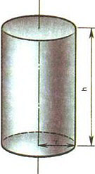 ЦИЛИНДР (от греч. kylindros - валик), геометрическое тело, ограниченное круглой цилиндрической поверхностью и двумя пересекающими её плоскостями. Если они перпендикулярны образующей цилиндрической поверхности, то цилиндр называется прямым. Он может быть образован вращением прямоугольника вокруг к.-л. его стороны. Объём цилиндра V=Пи r2h, площадь боковой поверхности S=2 Пи rh, где Пи = 3,14..., r - радиус направляющей, h - длина отрезка образующей.