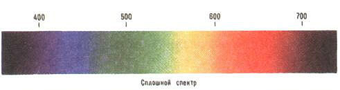 Цвет. Сплошной спектр видимого излучения. Сверху даны длины волн в нанометрах.