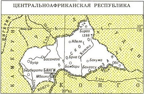 ЦЕНТРАЛЬНОАФРИКАНСКАЯ РЕСПУБЛИКА (ЦАР), государство в Центральной Африке. Пл. 623 тыс. км2. Население 3,3 млн. чел., гл. обр. банда, гбайя, нгбанди, азанде. Официальные языки - французский, санго. Верующие - протестанты, католики, часть придерживается местных традиционных верований. Глава государства - президент. Законодательный орган - двухпалатный Конгресс (Экономический и региональный совет и Национальное собрание). Столица - Банги. Адм.-терр. деление: 16 префектур. Денежная единица - франк КФА.