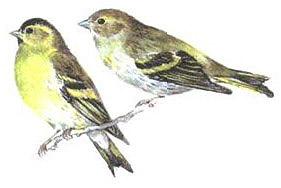 Чиж. Самец (слева) и самка.