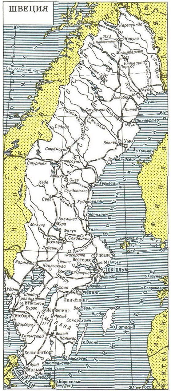 В 11 в. создано единое шведское королевство. В 12-14 вв. шведы завоевали Финляндию (до 1809). Объединение в 1397 Швеции с Данией и Норвегией (Кальмарская уния) привело к подчинению Швеции Данией, от которого Швеция окончательно освободилась в 1523. Северная война 1700-21 с Россией закончилась разгромом шведской армии. В 1809 были проведены демократические реформы, принята конституция. В 1-й и 2-й мировых войнах Швеция заявила о нейтралитете. В 1932-76, в 1982-91 и с 1994 во главе правительств - социал-демократы.