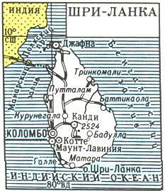 ШРИ-ЛАНКА (Демократическая Социалистическая Республика Шри-Ланка), государство в Южной Азии, на острове Шри-Ланка в Индийском океане, у южной оконечности полуострова Индостан. Пл. 65,6 тыс. км2. Население 18,3 млн. чел., в осн. сингалы (70%) и тамилы (22%). Официальные языки - сингальский, тамильский. Верующие - буддисты (сингалы), в тамильских р-нах - индуисты, часть - мусульмане-сунниты и христиане. Входит в Содружество. Глава государства и правительства - президент. Законодательный орган - парламент. Официальная столица - Шри-Джаяварденапура-Котте (местопребывание парламента), фактическая - Коломбо. Адм.-терр. деление: 25 округов. Денежная единица - рупия Шри-Ланки.