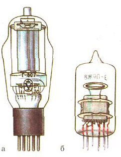 Электронная лампа: а - генераторная; б - приёмно-усилительная.