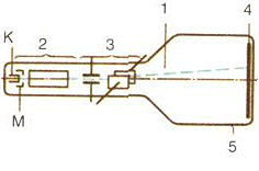 баллон; К - катод (источник электронов); М - управляющий электрод (модулятор).