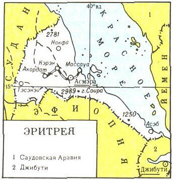 ЭРИТРЕЯ (Государство Эритрея), государство на С.-В. Африки. Омывается Красным морем. Пл. 93,7 тыс. км2. Население ок. 3,6 млн. чел., гл. обр. тиграи, тигре, афар и др. Официальный язык - тигринья. Верующие гл. обр. христиане-монофиситы и мусульмане-сунниты, есть католики и протестанты. Глава государства - президент. Законодательный орган - Национальная ассамблея. Столица - Асмэра. Адм.-терр. деление: 10 провинций. Денежная единица - эфиопский бырр.