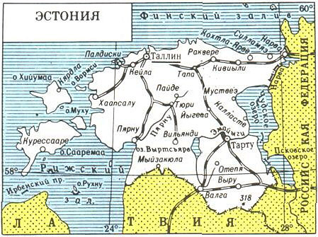 ЭСТОНИЯ (Республика Эстония), государство на С.-З. Восточной Европы, на побережье Балтийского моря. Пл. 45,2 тыс. км2. Население 1536 тыс. чел., городское 72%; эстонцы (61,5%), русские (30,3%), украинцы (3,1%) и др. Официальный язык - эстонский. Большинство верующих - лютеране. Глава государства - президент. Законодательный орган - Сейм. Столица - Таллин. 15 уездов, 33 города, 23 посёлка городского типа. Денежная единица - эстонская крона.