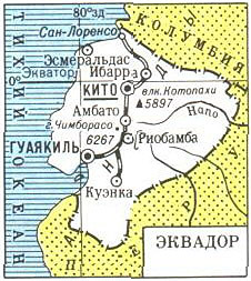 ЭКВАДОР (Республика Эквадор), государство на С.-З. Южной Америки, омывается Тихим океаном. Пл. 283,6 тыс. км2. Население 11,7 млн. чел., гл. обр. эквадорцы (преимущественно испано-индейские метисы), а также индейские народы (в осн. кечуа). Официальный язык - испанский. Верующие гл. обр. католики. Глава государства и правительства - президент. Законодательный орган - Национальный конгресс. Столица - Кито. Адм.-терр. деление: 21 провинция. Денежная единица - сукре.