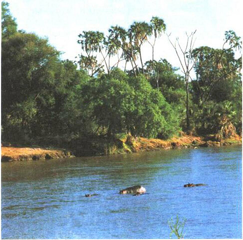 Экваториальная Гвинея. Бегемоты в реке Мбини.