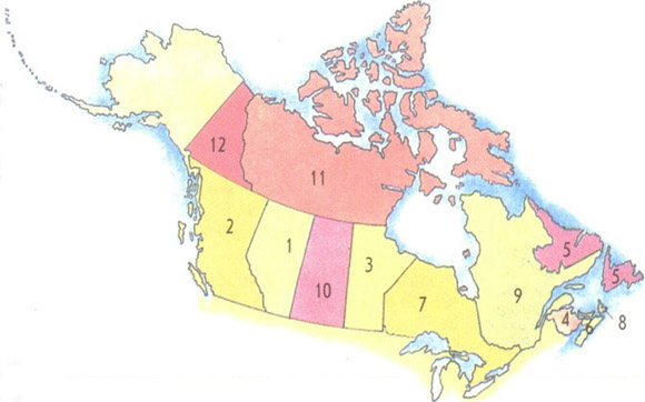 | 11 . Северо-Западные Территории (Northwest Territories) | Йеллоунайф (Yellowknife) |