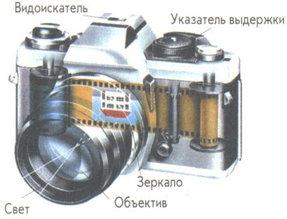 пленке с помощью второго комплекта линз. Образуется перевернутое изображение.