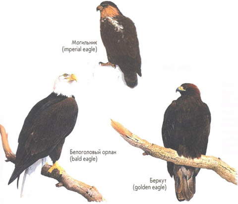Орлы относятся к тому же семейству, что и коршуны, и грифы. У всех этих птиц сильные кривые когти. Белоголовый орлан и беркут обитают в Северной Америке. Белоголовый орлан не встречается более нигде в мире.