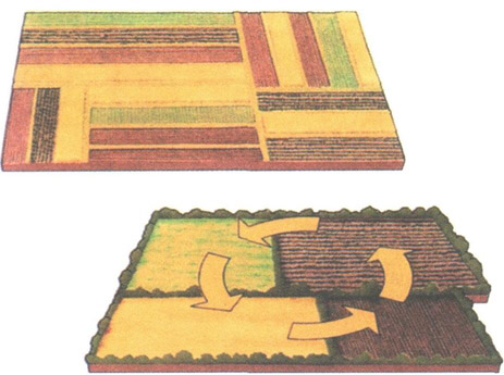 Четырехгодичный севооборот должен вернуть плодородие почве. Посевы зерновых, пшеницы или ячменя, сменяются клевером и корнеплодами, например, турнепсом. Один год поле остается под паром (fallow), на нем ничего не растет, чтобы земля отдохнула.