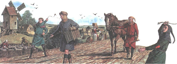 В средневековой Европе более 80% всего населения жили в сельской местности и занимались земледелием. Во время весеннего сева дети отпугивали птиц.