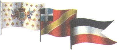 В ходе Французской революции 1789 г. королевский флаг (слева) был заменен сначала флагом Бастилии, а потом французским национальным.