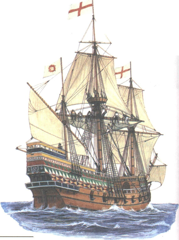 Галеоны несли на двух передних мачтах прямые (square) паруса, а на одной или двух задних - треугольные, или косые латинские (lateen), паруса. Это означало, что галеоны могли ходить против ветра.