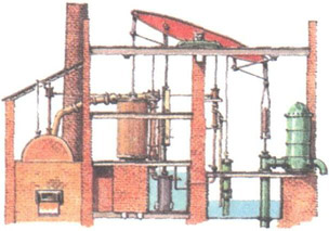 Первая паровая машина, построенная Томасом Нъюкоменом в 1712 г., использовалась для откачки воды из шахты. Сила пара и произвела промышленную революцию.