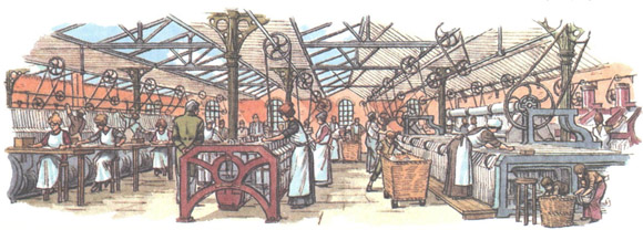 Работницы - в основном женщины и девушки, получавшие скудную оплату, - в начале XIX в. на ткацкой фабрике.