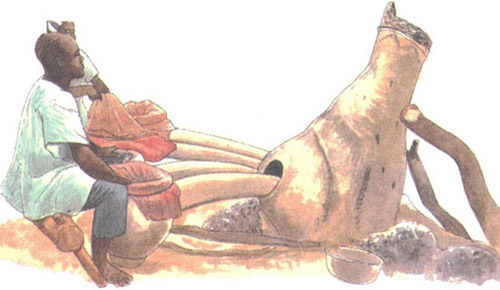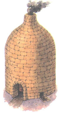 Печъ (kiln или furnace) XVIII в. (вверху); внизу - африканская печь, относящаяся примерно к 400 г. до н.э. Процесс обработки предметов в печи называется обжигом (firing).