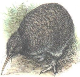 Птица киви получила свое название от испускаемых самцом пронзительных криков. Киви обитают в лесах и разыскивают пропитание - червячков и личинок -ночами. У них плохое зрение, они вынюхивают пищу с помощью ноздрей, расположенных у основания длинного клюва.