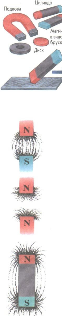 Силы притяжения и отталкивания вокруг магнита невидимы. Но если насыпать на бумагу железные опилки и подложить под нее магнит, можно увидеть силовые линии магнитного поля.