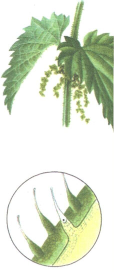 Крошечные волоски на листе крапивы похожи на полые иглы. Когда они проникают в кожу и обламываются, в ранку вытекает яд из небольшого резервуара, расположенного у основания иглы.