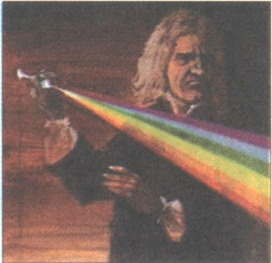 Находясь в затемненной комнате, Исаак Ньютон пропустил через стеклянную призму солнечный луч, пробивающийся сквозь отверстие в стене. Он заметил, что белый свет разложился на цвета радуги: красный, оранжевый, желтый, зеленый, голубой, синий, фиолетовый.