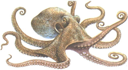 каждом из восьми щупальцев осьминога располагаются два ряда присосок, помогающих моллюску ловить добычу.