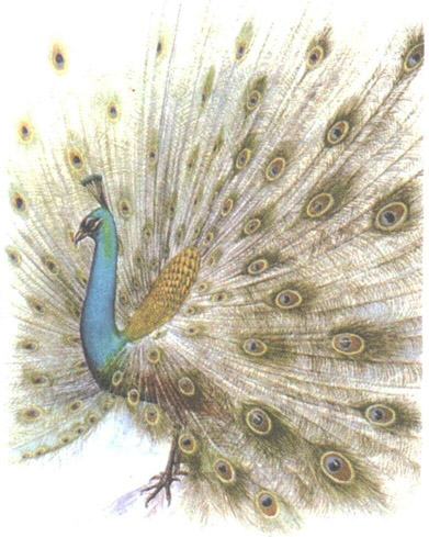 Павлин привлекает к себе самок, распуская пышный хвост. Он очень гордится собой -"красуется, как павлин".