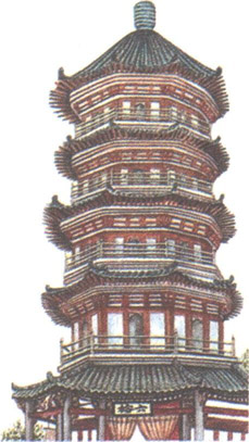 Края крыши каждого этажа пагоды загибаются вверх. Китайские пагоды обычно имеют нечетное число этажей, в их основании лежит восьмиугольник. Пагоды Японии обычно пятиэтажные.