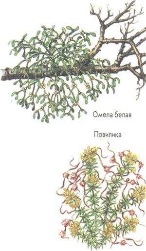 В действительности омела - паразит только наполовину: часть нужных ей питательных веществ она получает от хозяина, а другую создает фотосинтезом. Повилика же паразит настоящий, она целиком зависит от растения-хозяина.