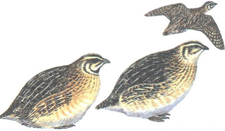 Обыкновенная куропатка, населяющая Европу, Азию и Северную Африку, размером примерно 18 см и покрыта бурыми, пятнистыми перьями. Американские куропатки bobwhite (куропатка виргинская) и crested quail (куропатка хохлатая) -крупнее и имеют более яркое оперение.
