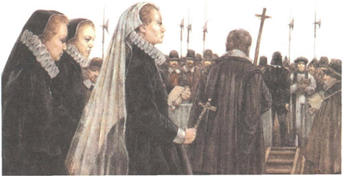 Мария, королева Шотландии, на пути к месту казни в замке Фотерингей в 1587 г. Ее обвинили в заговоре против Елизаветы I, королевы Англии.