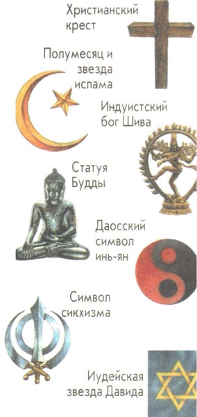 У всех основных религий есть особые символы или знаки. Инь-ян даосизма, например, отображает две противоборствующие силы природы, которые необходимо гармонически уравновесить.