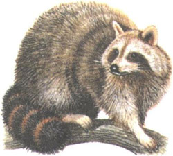 raccoon или racoon сущ. енот, небольшое пушистое животное с черным полосатым хвостом и полосками на мордочке.